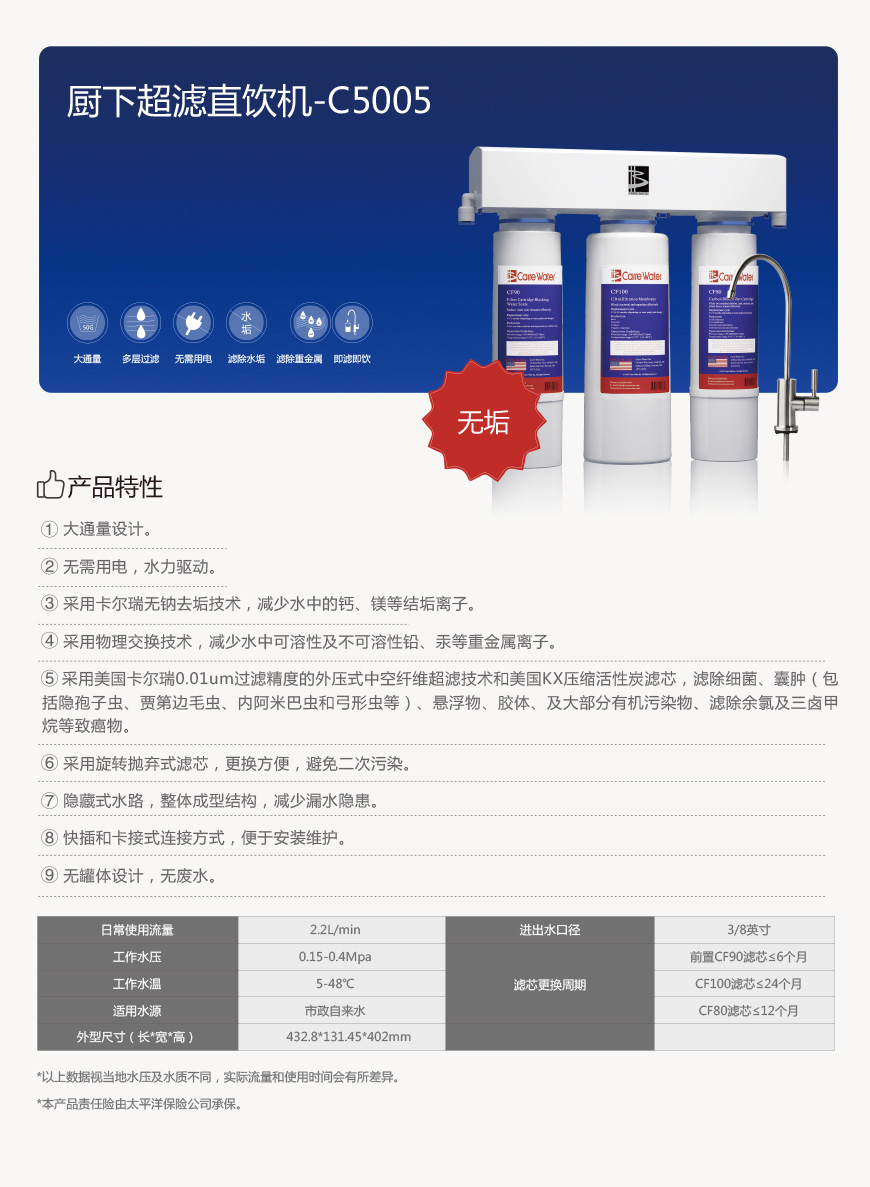 末端净水器系小型的家用水处理设备,由英国查尔斯·巴尼澳创始发明。末端净水器的结构大致有粗滤、活性炭吸附、离子交换树脂、中空纤维和反渗透膜、超滤膜等几种。可以有效清除水中的氯、重金属、细菌、病毒、藻类以及固体悬浮物,后置活性碳理将进一步除去水中的各种有机物,使处理后的水清澈洁净、无菌,改善口感。自来水中含有很多的有害物质,比如说可溶解性重金属离子、铁锈、超标的余氯、还有病菌病毒等。随着人们对健康生活的追求和水质的要求越来越高,以及国内家庭净水技术的成熟,末端净水器会更加广泛地应用于普通家庭日常生活中。